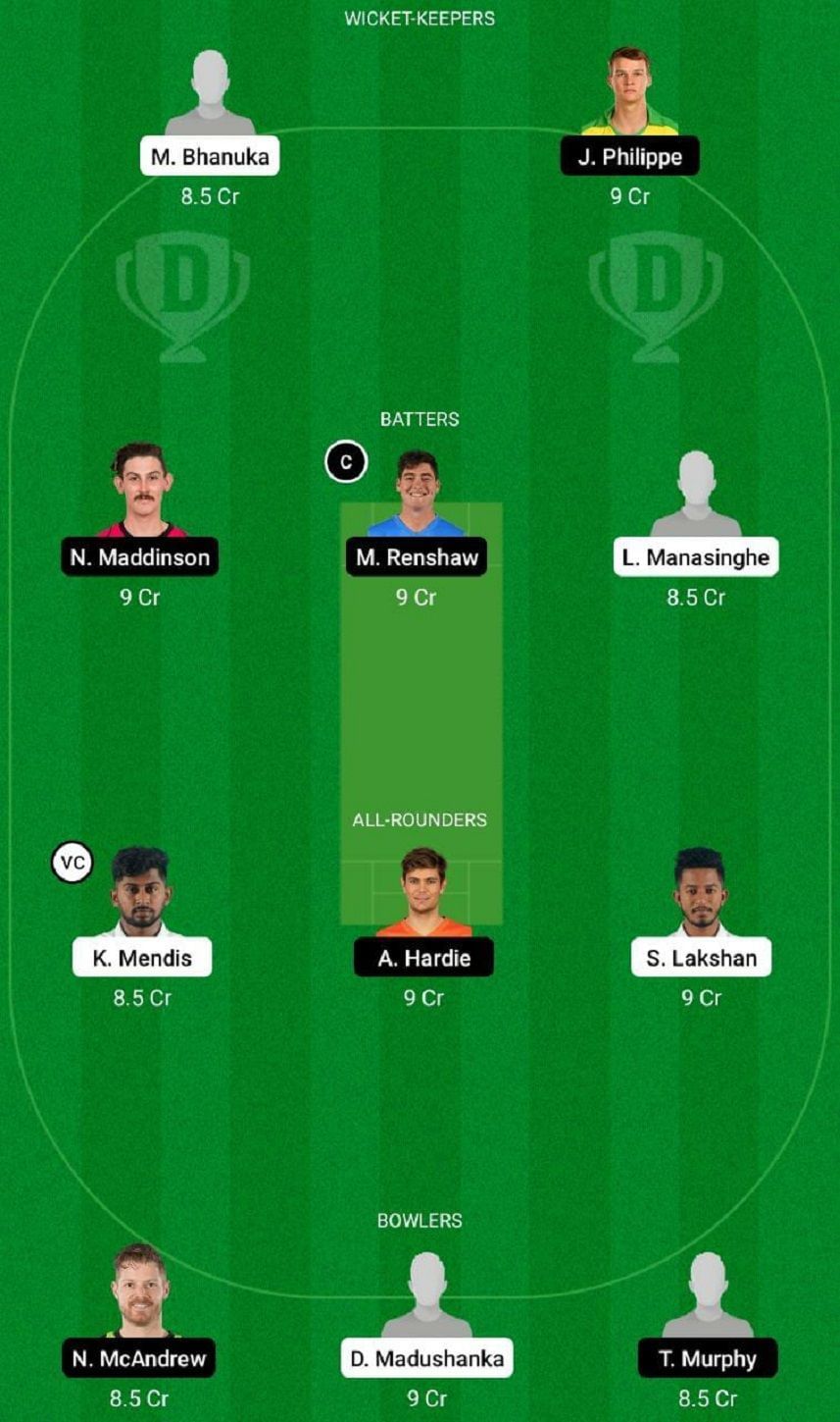 Fantasy Suggestion #1: M Bhanuka, J Philippe, N Maddinson, M Renshaw, L Manasinghe, K Mendis, A Hardie, S Lakshan, N McAndrew, D Madushanka and T Murphy.