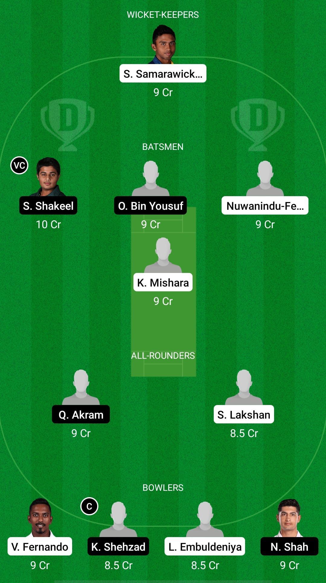 Asitha Fernando, Nuwanindu-Fernando, Shammu Ashan, Lasith Embuldeniya, Sadeera Samarawickrama (C & WK), Oshada Fernando, Suminda Lakshan, Nishan Madushka, Kamil Mishara, Nipun Dananjaya, Vishwa Fernando