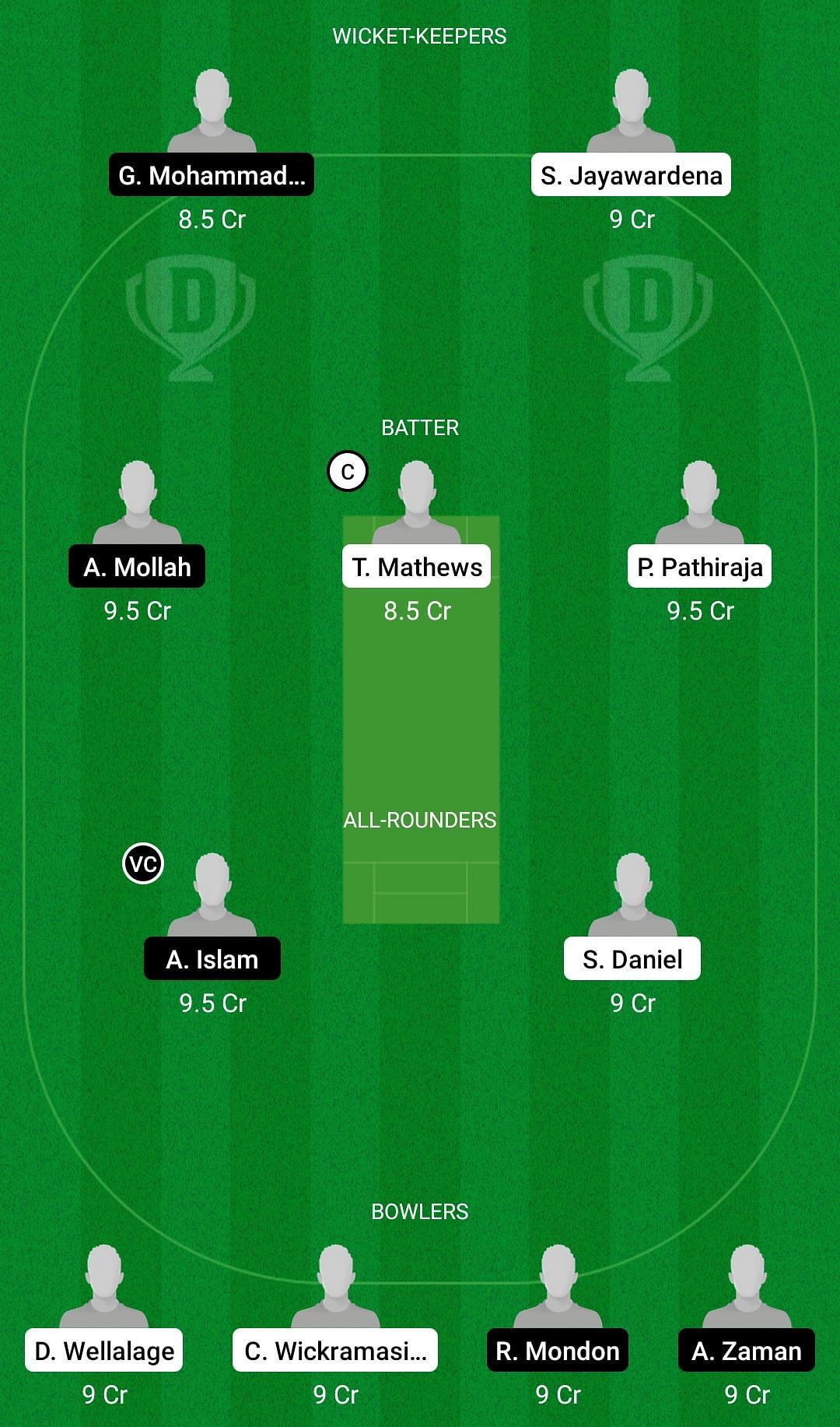Fantasy Suggestion #1: Gazi Tahjibul Islam, Sadeesh Jayawardena, Aich Mollah, Traveen Mathews, Pawan Pathiraja, Shevon Daniel, Ariful Islam, Ripon Mondon, Ashiqur Zaman, Dunith Wellalage, Chamindu Wickramasinghe