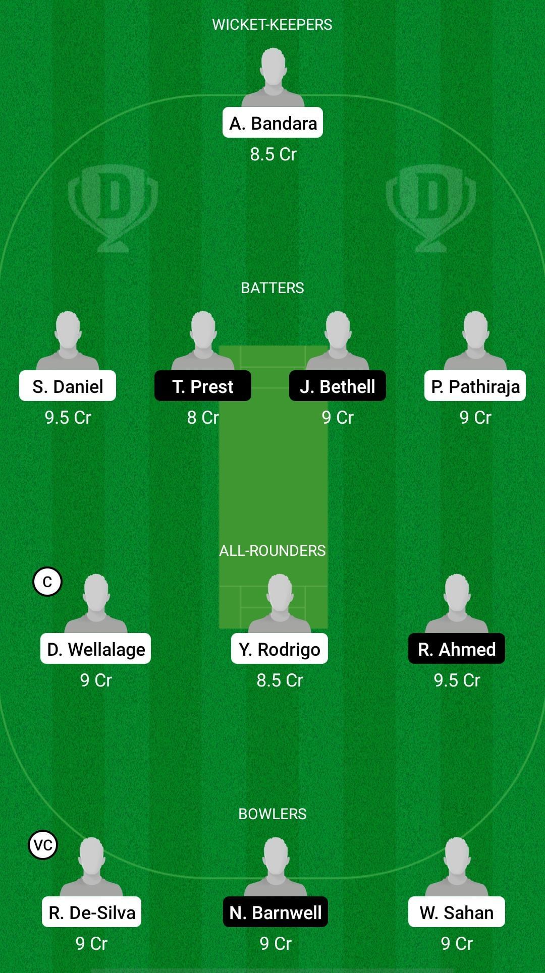 Captain: Dunith Wellalage. Vice-captain: Raven de Silva.