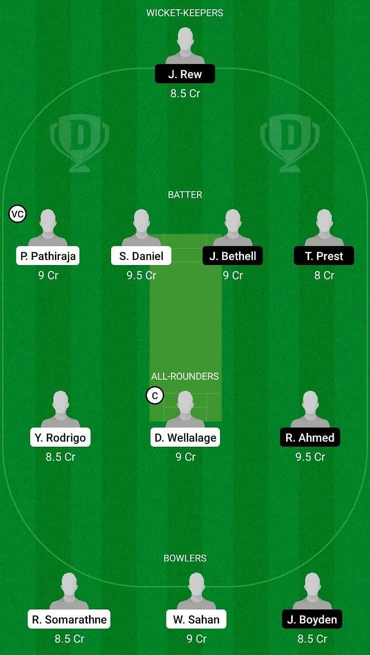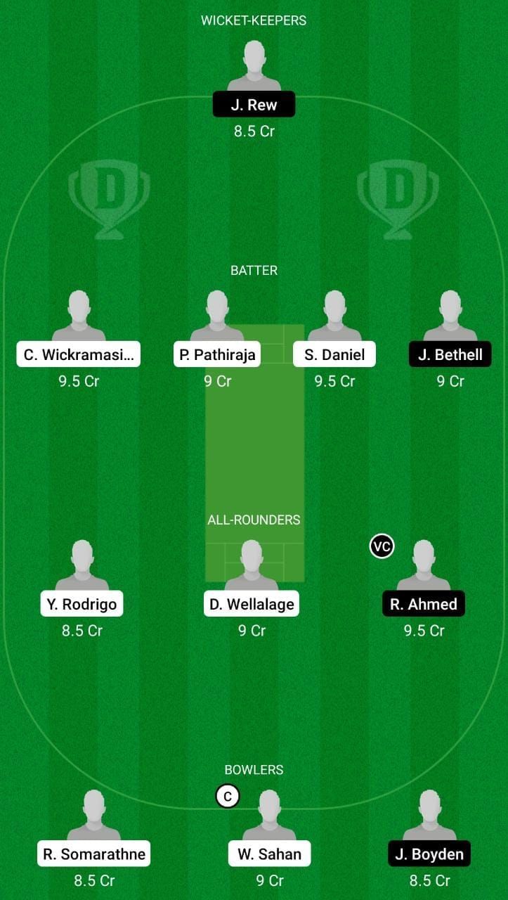 Captain: D Wellalage. Vice-Captain: P Pathiraja.