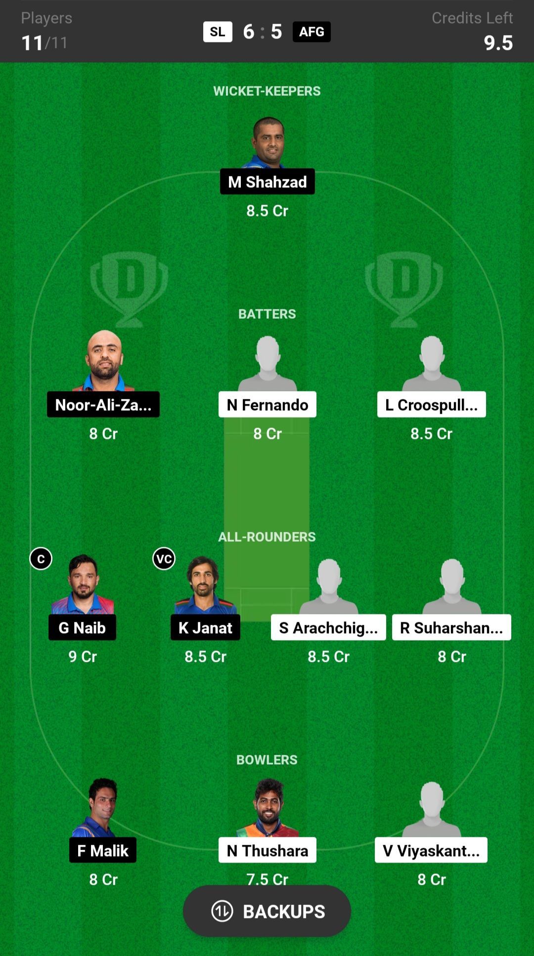 Sri Lanka vs Afghanistan Dream11 Prediction Today, Grand League