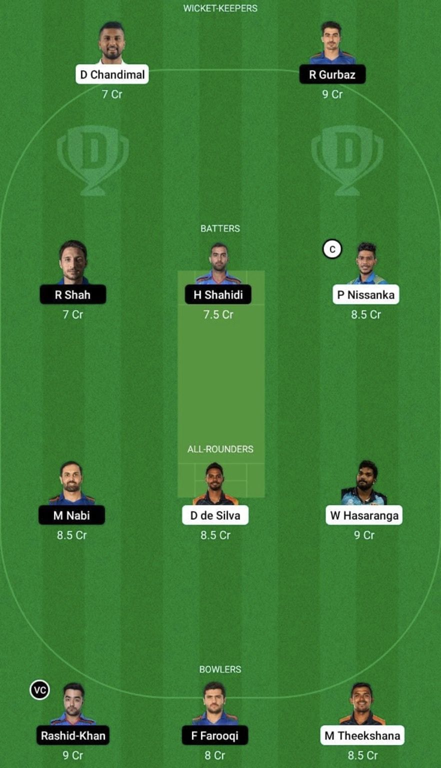 Batters: Najibullah Zadran, Hashmatullah Shahidi (vc), Charith Asalanka, Pathum Nissanka