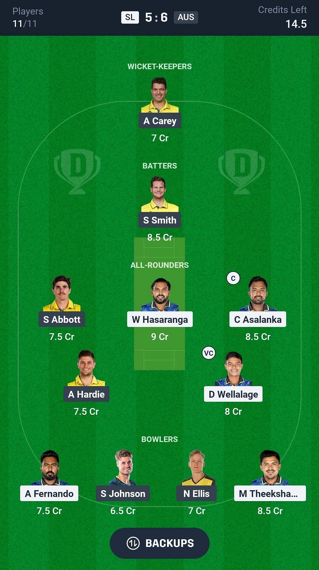 Sri Lanka vs Australia Dream11 Prediction Today, Grand League