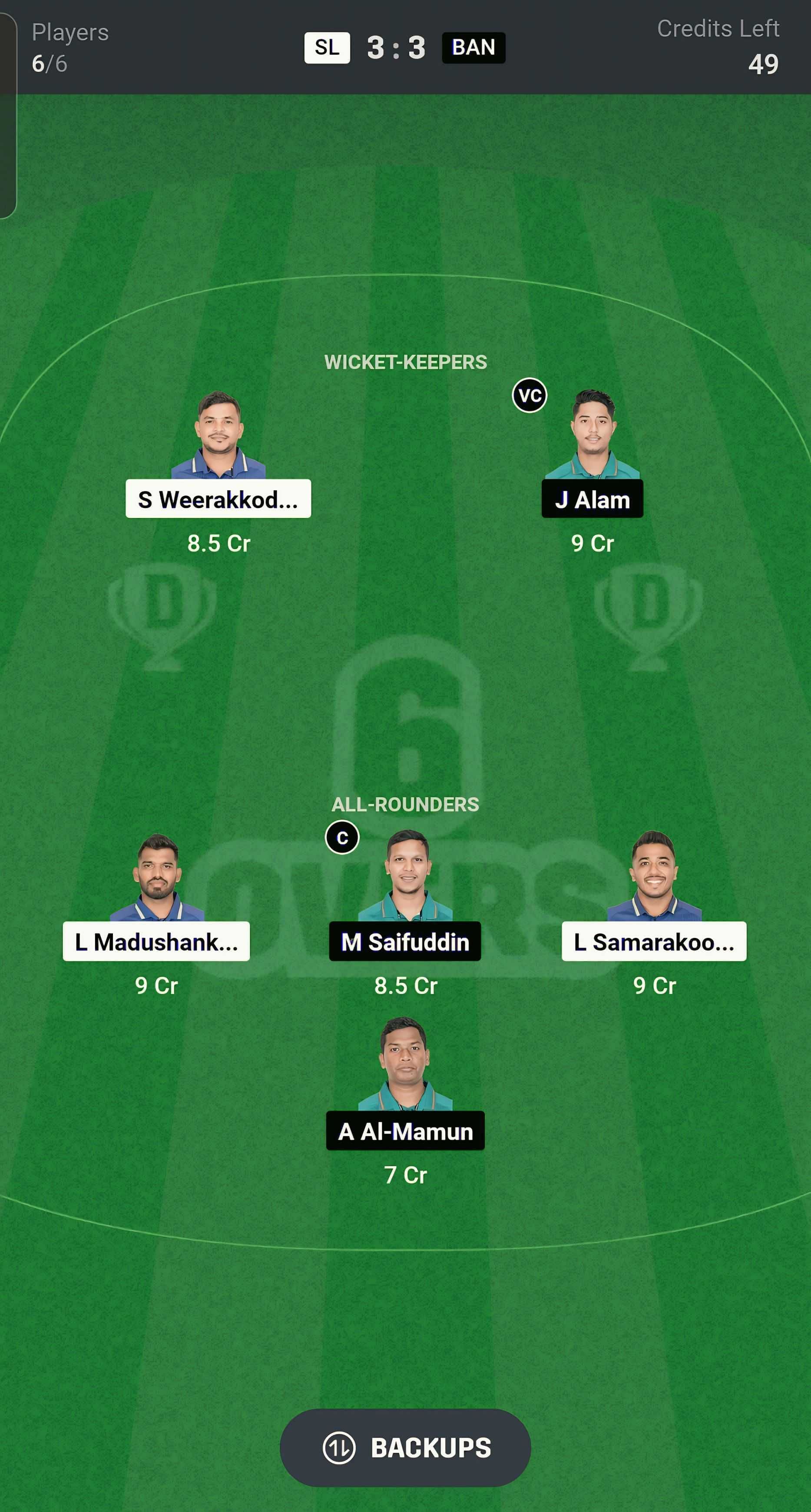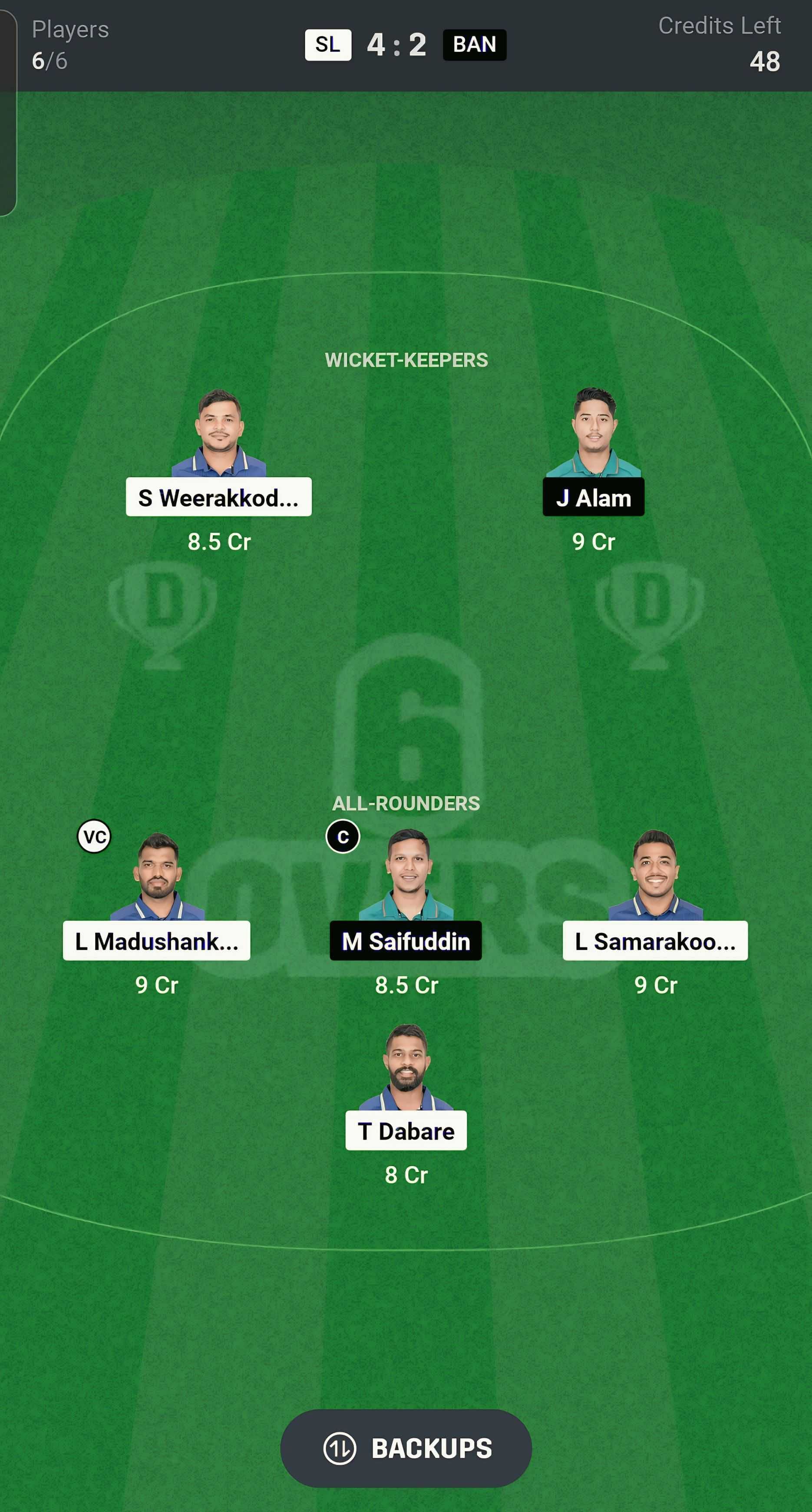 All-rounders: M Saifuddin, L Madushanka, L Samarakoon, T Dabare