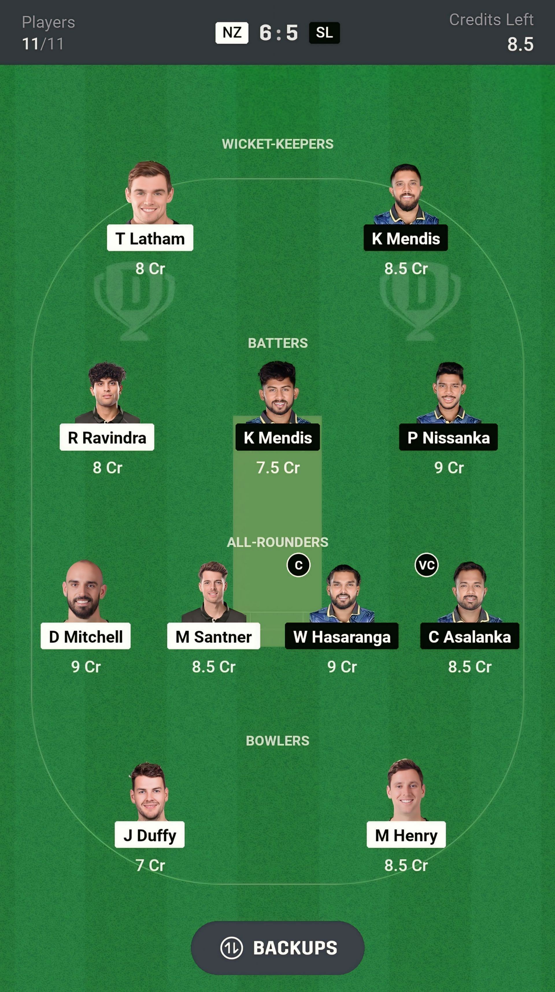 Sri Lanka vs New Zealand Dream11 Prediction Today, Grand League