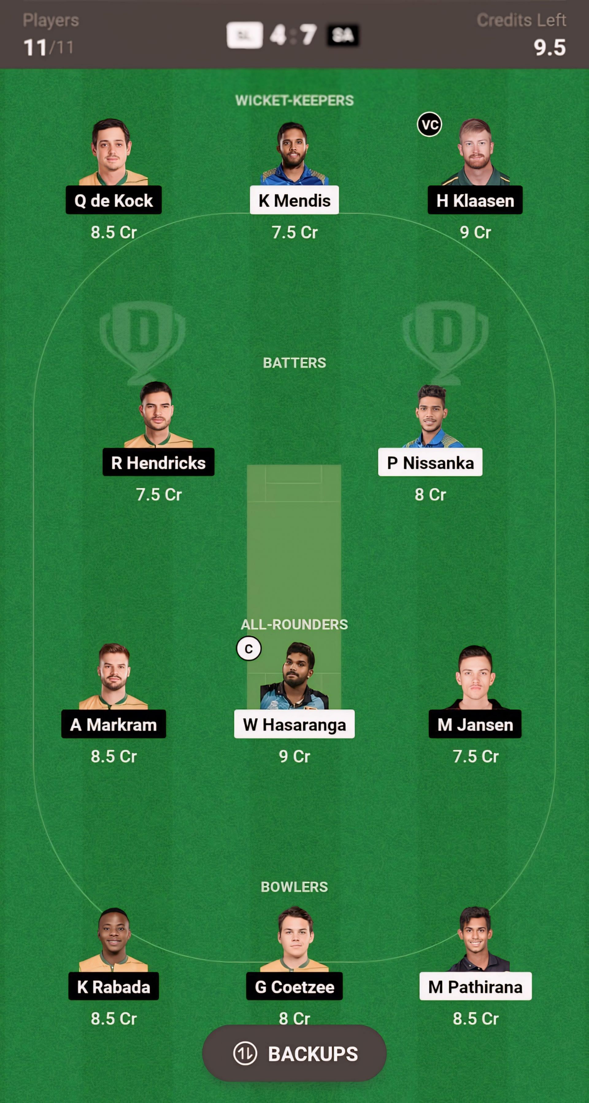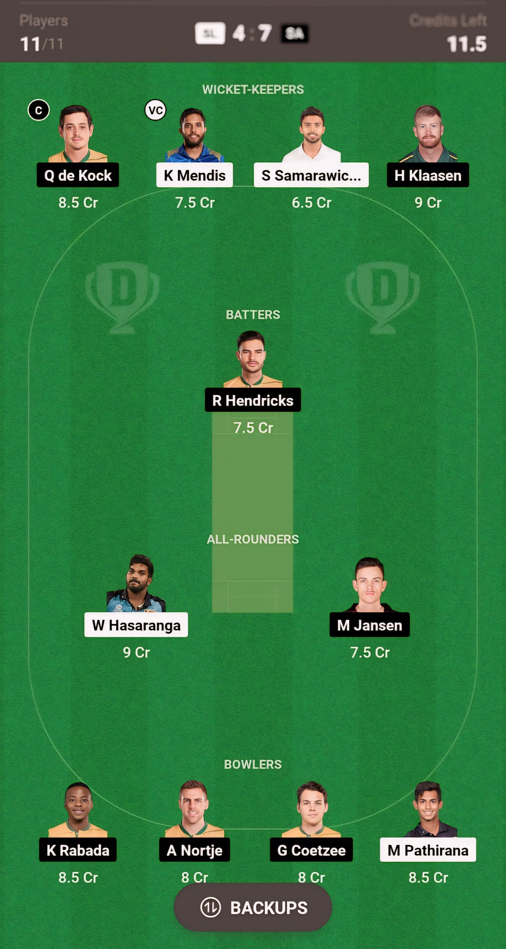 Wicketkeepers: K Mendis, H Klaasen, Q de Kock, S Samarawickrama