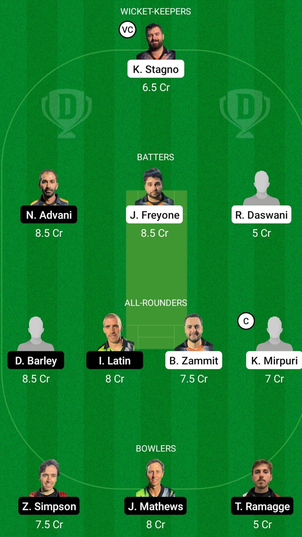 Bryan Zammit has been good with both the bat and the ball for his team. His ability to impact the match with either of the trades makes him a good choice for the captain or vice-captain of the match.