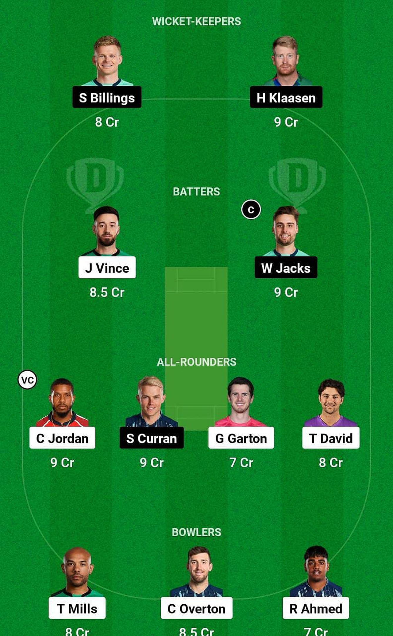 All-rounders: Chris Jordan, Tim David, Sam Curran, George Garton