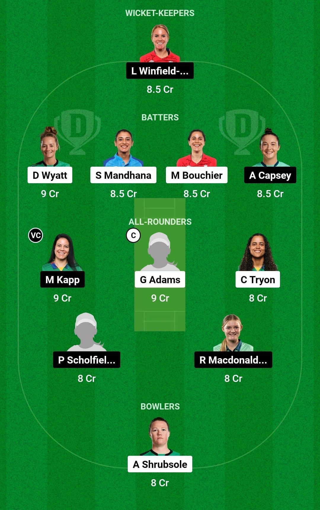 Batters: Danielle Wyatt, Smriti Mandhana, Maia Bouchier, Alice Capsey