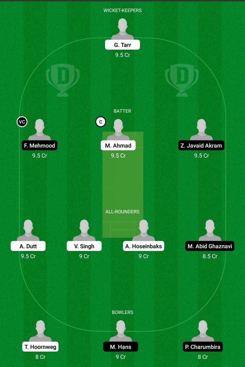 Fantasy Suggestion #2: Garnet Tarr, Faisal Mehmood, Zishan Akram, Musa Ahmad, Vikramjit Singh, Mohsin Ghaznavi, Aryan Dutt, Asif Hoseinbaks, Mahesh Hans, Tom Hoornweg, Patient Charumbira