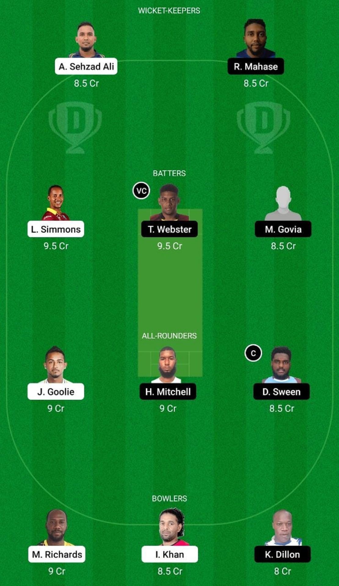 Fantasy Suggestion #2: A Sehzad Ali, T Webster, L Simmons, M Govia, D Sween, H Mitchell, J Goolie, K Dillon, I Khan, M Richards, A Mahase