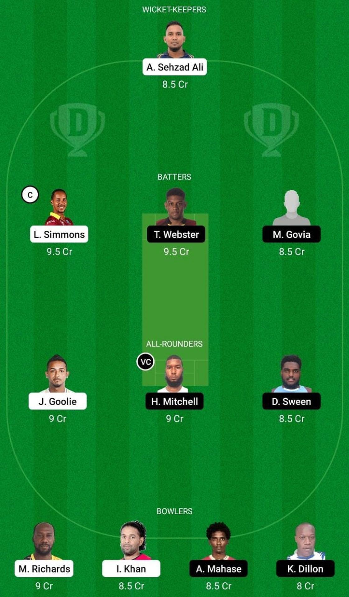 Fantasy Suggestion #1: R Mahase, A Sehzad Ali, T Webster, L Simmons, M Govia, D Sween, H Mitchell, J Goolie, K Dillon, I Khan, M Richards