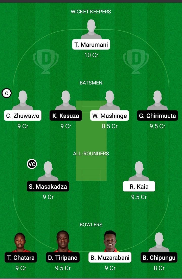 Fantasy Suggestion #1: Tadiwanashe Marumani, Cephas Zhuwawo, Gary Chirimuuta, Kevin Kasuza, William Mashinge, Shingirai Masakasaza, Roy Kaia, Blessing Muzarabani, Brighton Chipungu, Tendai Chatara, Donald Tripano.