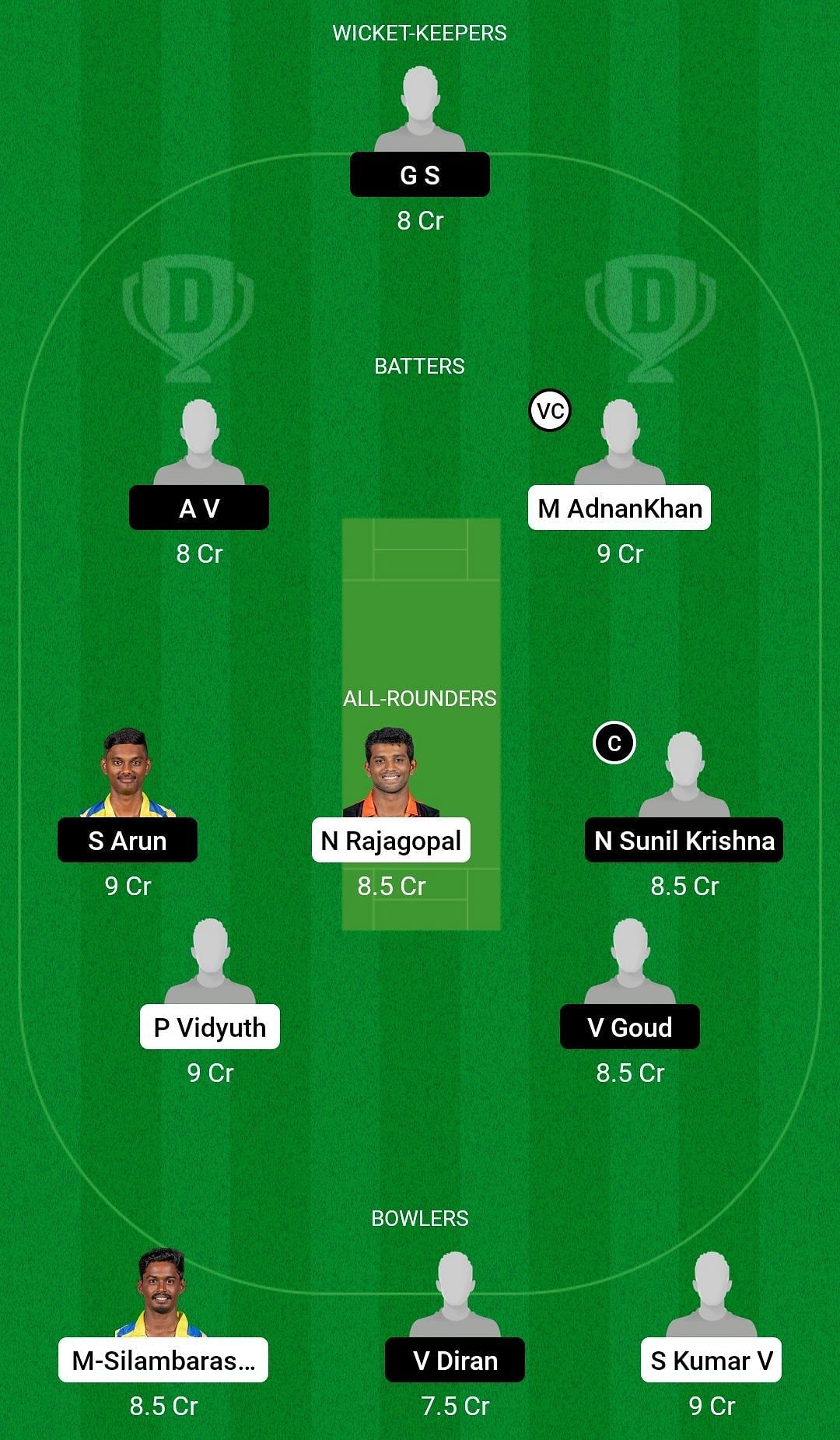Bowlers: M Silambarasan, Valliappan Yudheeswaran, Sanjeev Kumar V