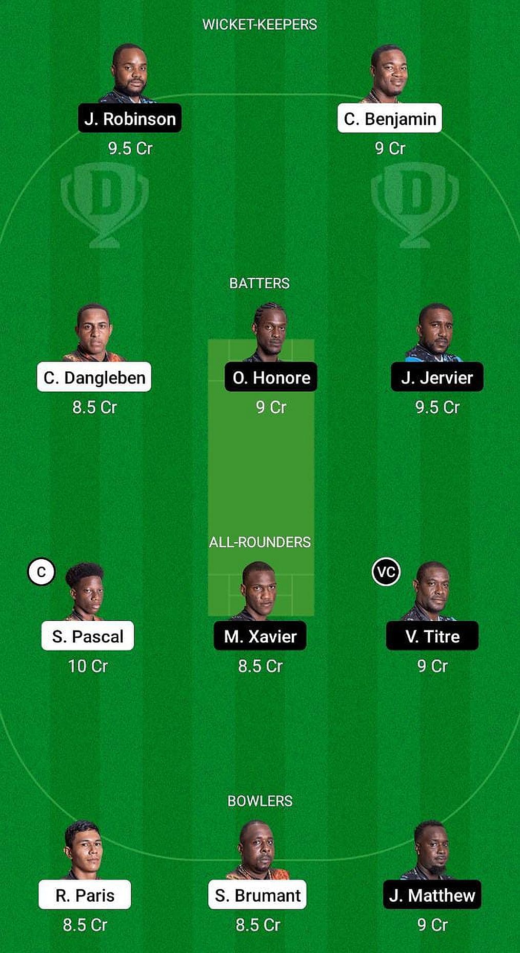 Fantasy Suggestion #1: Casimir Benjamin, Jerlani Robinson, Cheston Darngleben, Odiamar Honore, Junior Jervier, Stephan Pascal, Malakai Xavier, Vivian Titre, Romaine Paris, Sebastien Brumant, John Matthew.