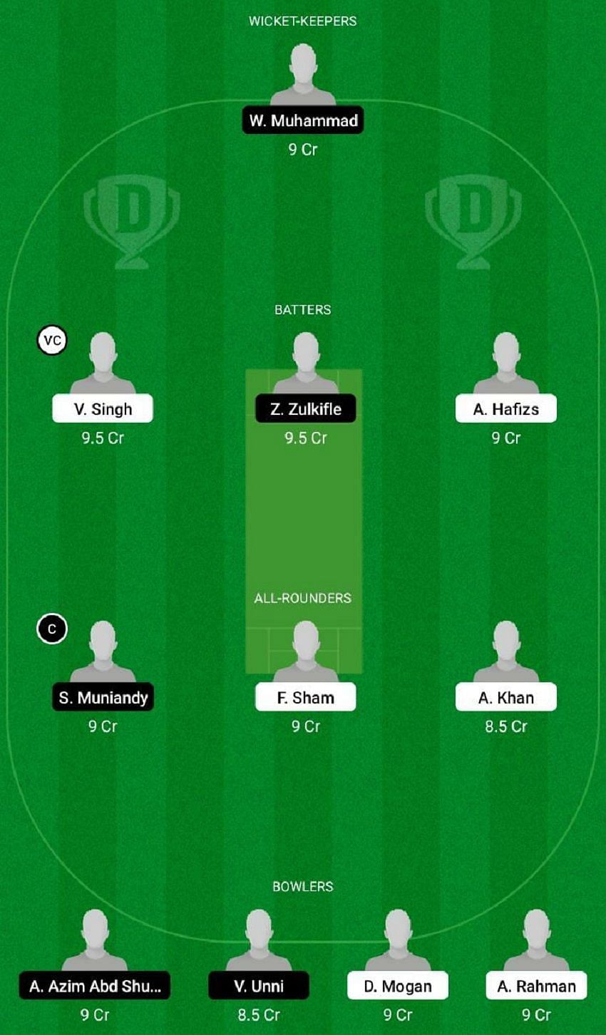 Fantasy Suggestion #1: W Muhammad, V Singh, Z Zulkifle, A Hafizs, S Muniandy, F Sham, A Khan, A Azim, V Unni, D Mogan and A Rahman