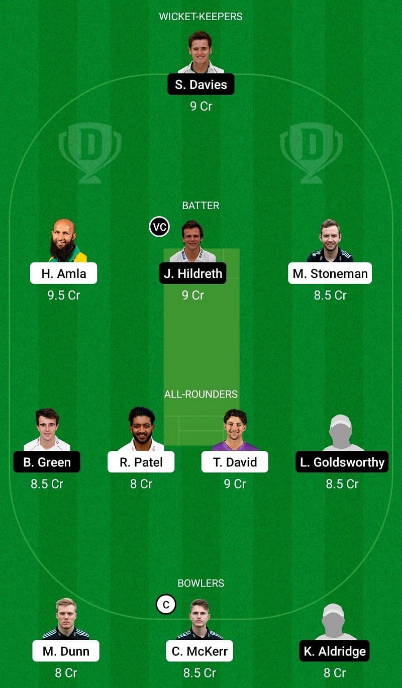 Fantasy Suggestion #2: Steven Davies, Hashim Amla, James Hildreth, Mark Stoneman, Ben Green, Ryan Patel, Tim David, Lewis Goldsworthy, Matt Dunn, Conor McKerr, Kasey Aldridge