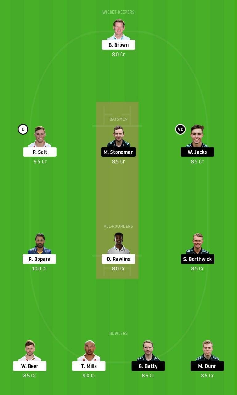 Fantasy Suggestion #1: B Brown, M Stoneman, P Salt, W Jacks, D Rawlins, R Bopara, S Borthwick, G Batty, M Dunn, T Mills and W Beer
