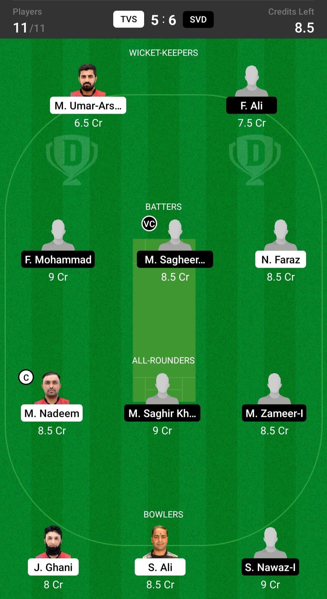 M Saghir and M Nadeem are the best all-rounder picks for the Dream11 team as they are batting in the top order and also completing their quota of ten overs. M Zameer is another good pick for today's Dream11 team.