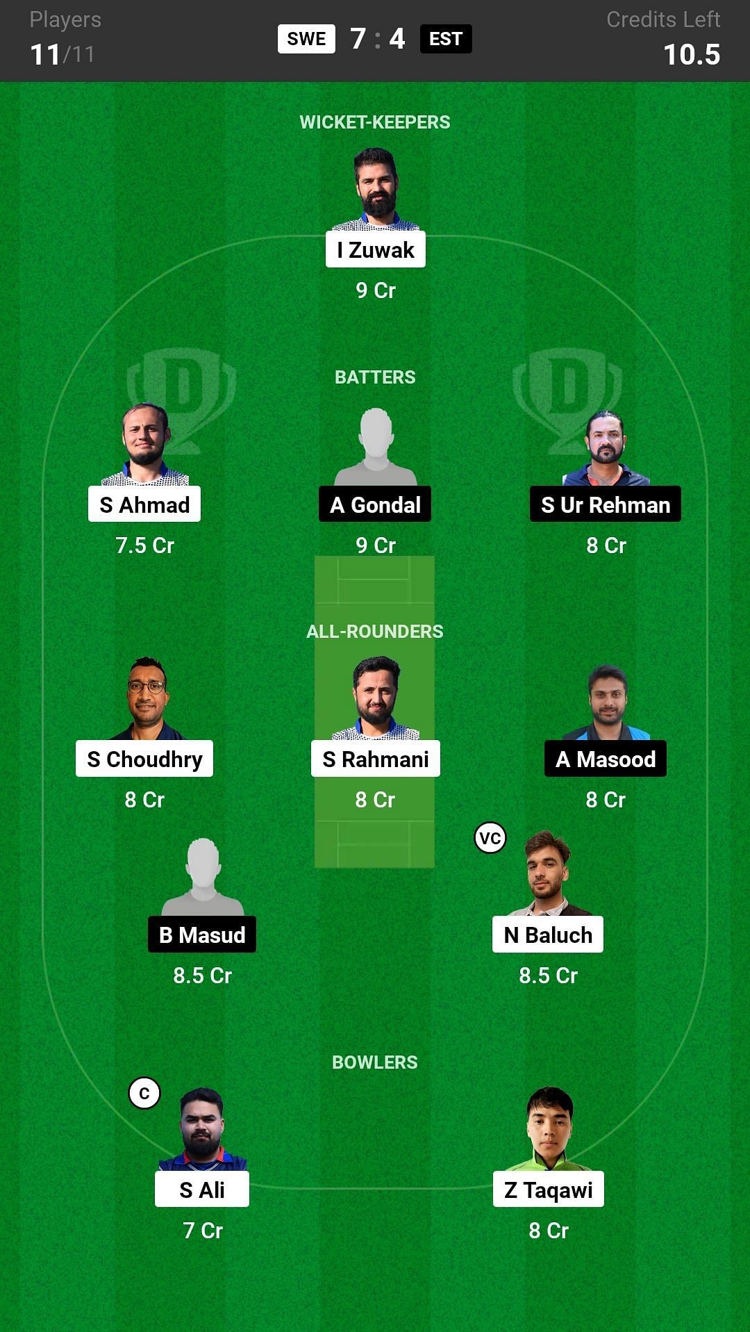 Sweden vs Estonia Dream11 Prediction Today, Grand League