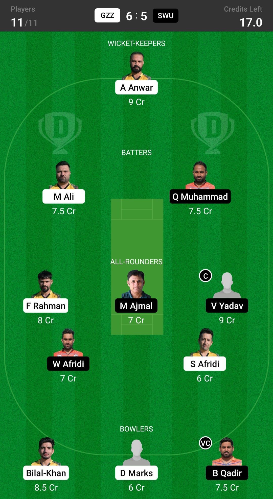 F Rahman and V Yadav are the best all-rounder picks for the Dream11 team as they are batting in the top order and also completing their quota of overs. W Afridi is another good pick for today's Dream11 team.