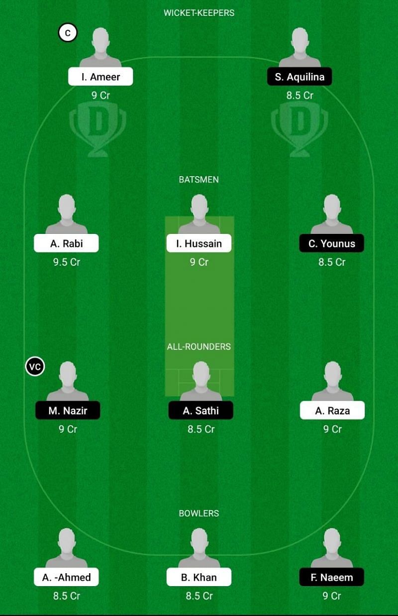 Captain: Aqeel Raza Vice-captain: Shamoon Liaqat