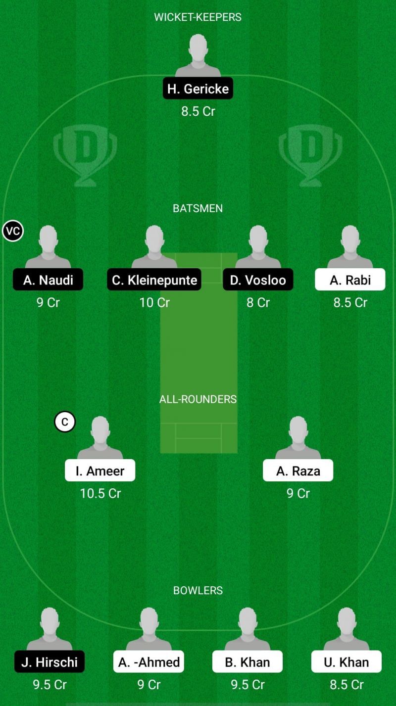 Fantasy Suggestion #1: Heinrich Gericke, Deon Vosloo, Andrew Naudi, Charl Kleinepunte, Atta Rabi, Imran Ameer, Bilal Khan, Arslan Ahmed, Umar Khan, Jurg Hirschi.