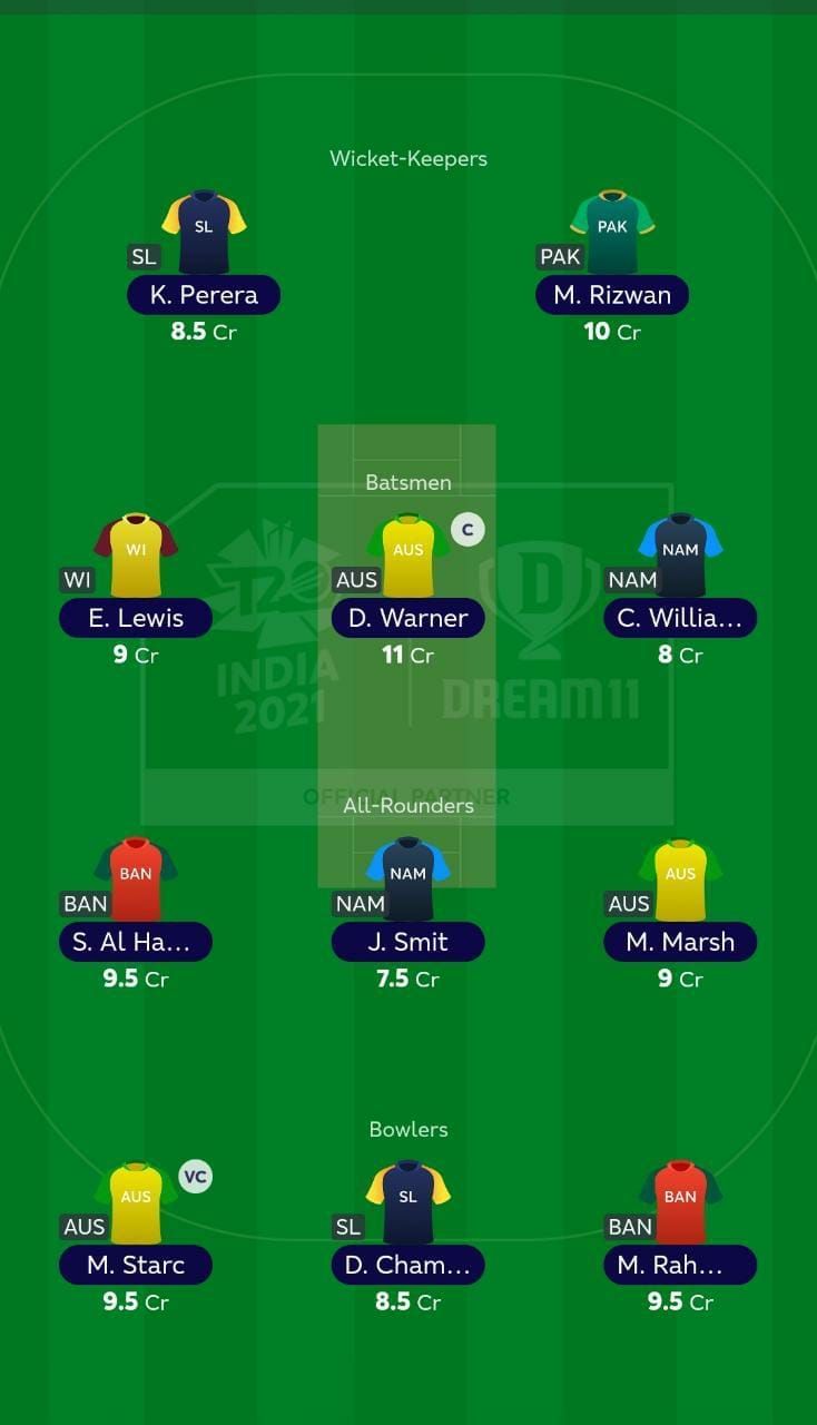 Best T20 World Cup 2021 Fantasy Team for Match 22, AUS vs SL