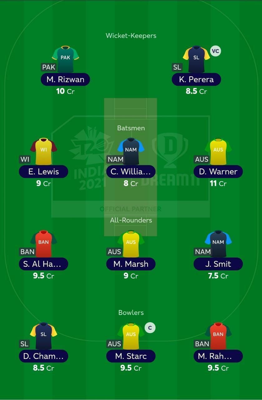 Wicketkeeper: Mohammad Rizwan (Pakistan, 10 credits) and Kusal Perera (Sri Lanka, 8.5 credits)