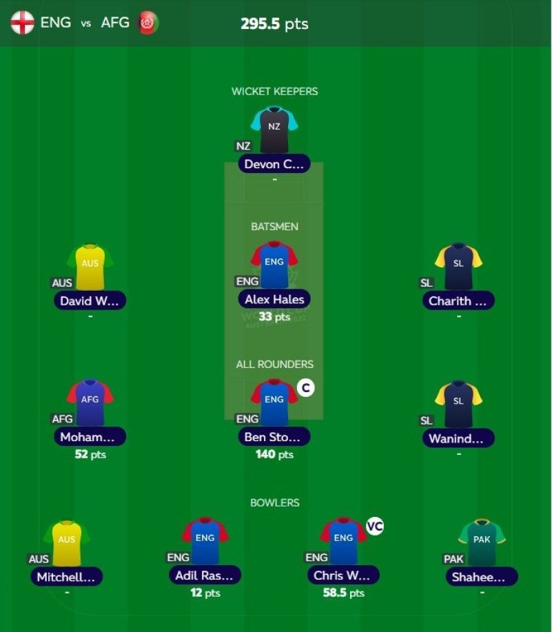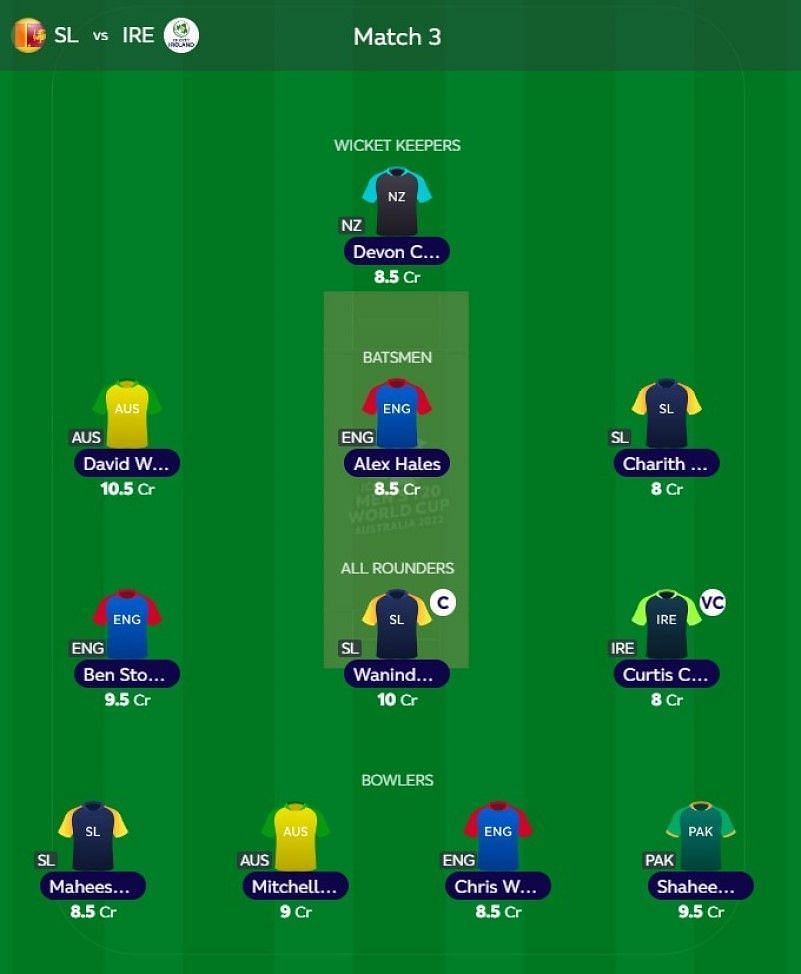 I made a few changes to the teams suggested in the article during the two matches yesterday. I went with Lockie Ferguson over Tim Southee, Charith Asalanka over Pathum Nissanka, and Stoinis over Mitchell Marsh in the AUS-NZ game.