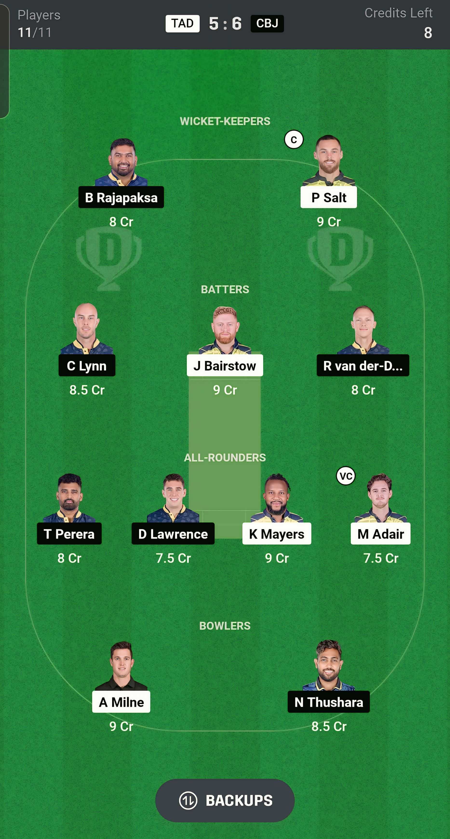 TAD vs CBJ match captain and vice-captain choices