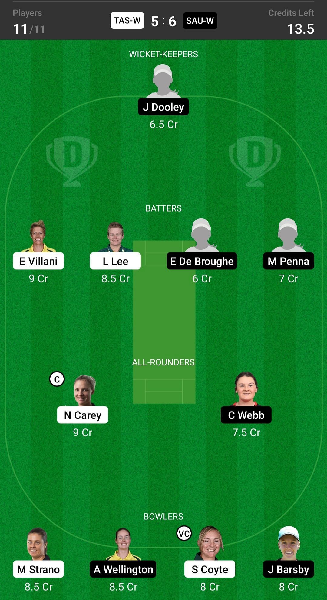 Tasmania Women vs South Australian Scorpions Women Dream11 Prediction Today, Grand League