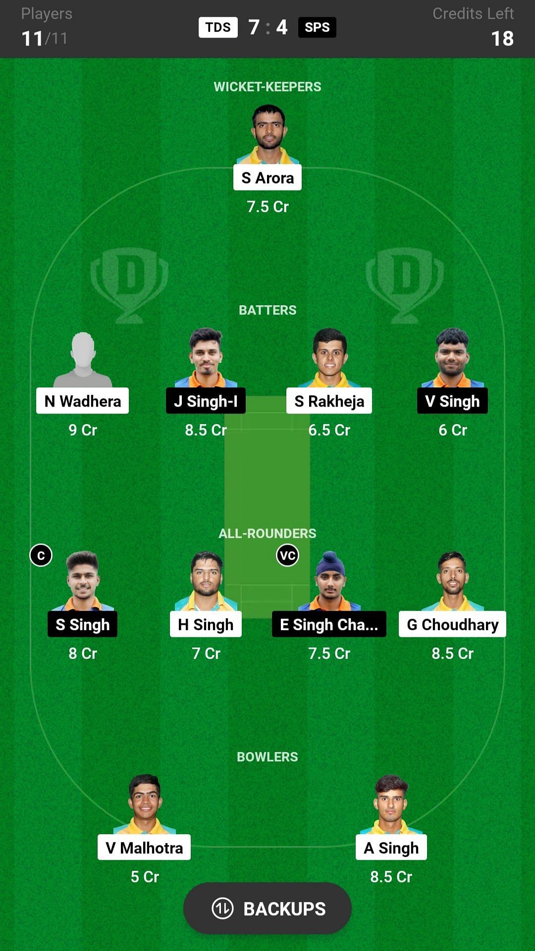 S Arora is no doubt the best wicket-keeper pick for today's match as he will bat in the top order and has a high chance of scoring well. He is expected to play well in today's match. A Malhotra is another good pick for today's nail-biting match.