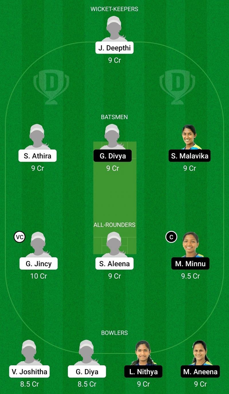 Fantasy Suggestion #1: Deepthi J S, Athira Sanal, Divya Ganesh, Malavika Sabu, Jincy George, Aleena Surendran, Minnu Mani, Joshitha V J, Diya Gireesh, Nithya Loordh, Aneena Mathew