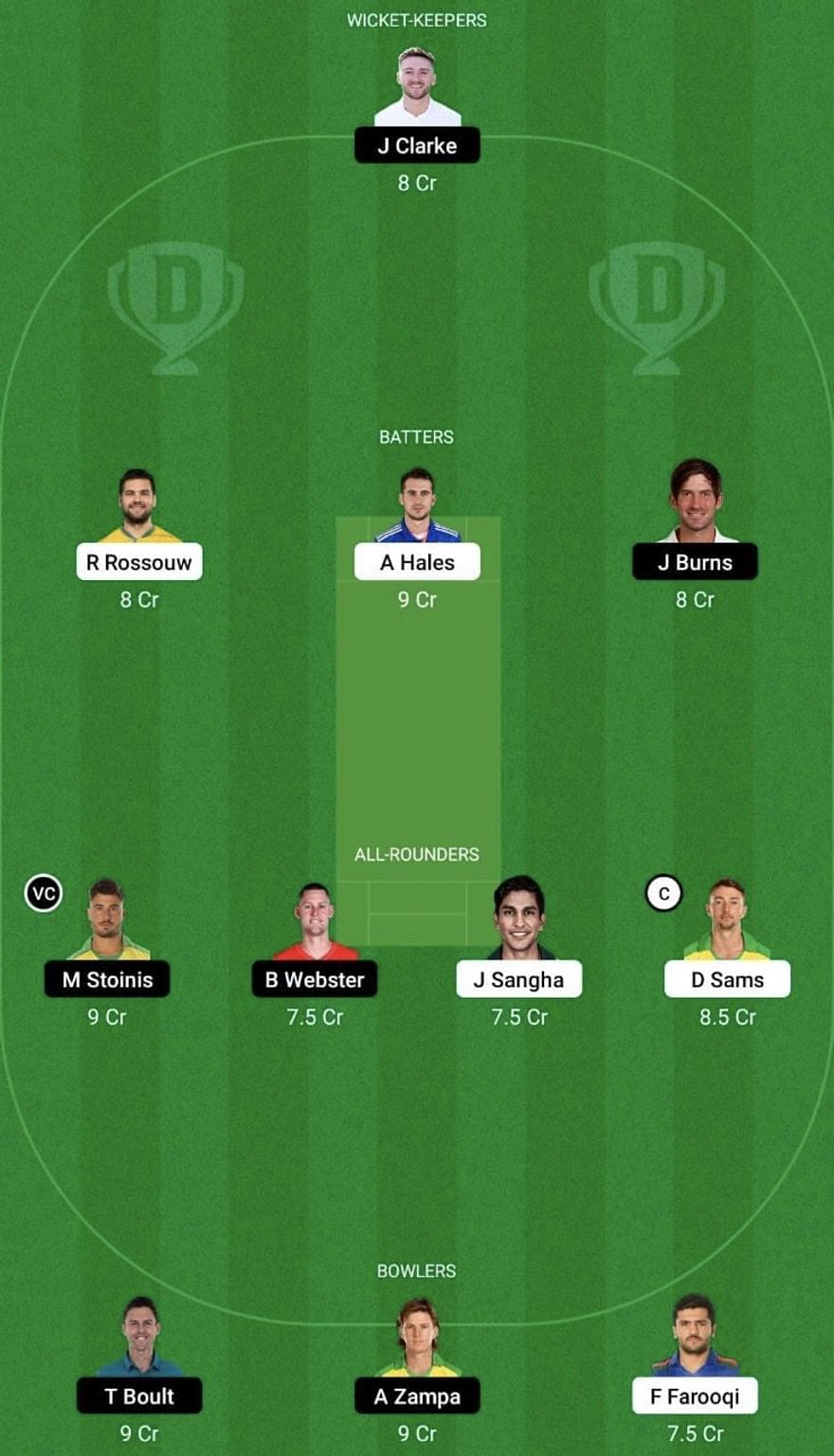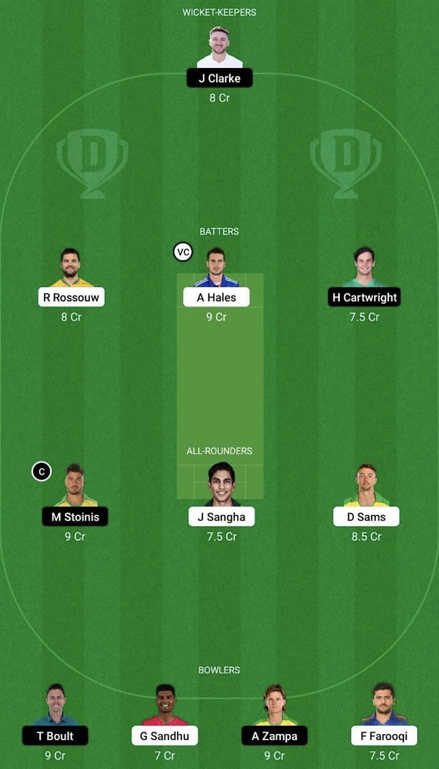 Bowlers: Adam Zampa, Trent Boult, Gurinder Sandhu, Fazalhaq Farooqi