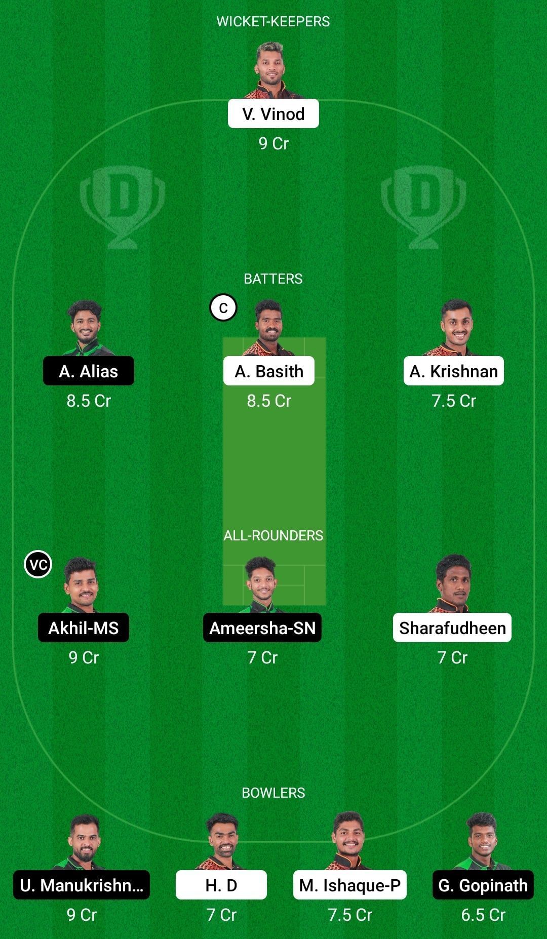 Batters: Albin Alias, Abdul Basith (c), Anand Krishnan