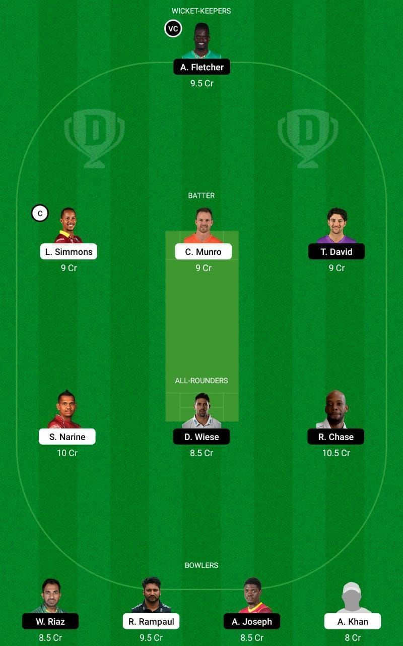 Fantasy Suggestion #1: Andre Fletcher, Colin Munro, Tim David, Lendl Simmons, Roston Chase, Sunil Narine, David Wiese, Ravi Rampaul, Alzarri Joseph, Wahab Riaz and Ali Khan