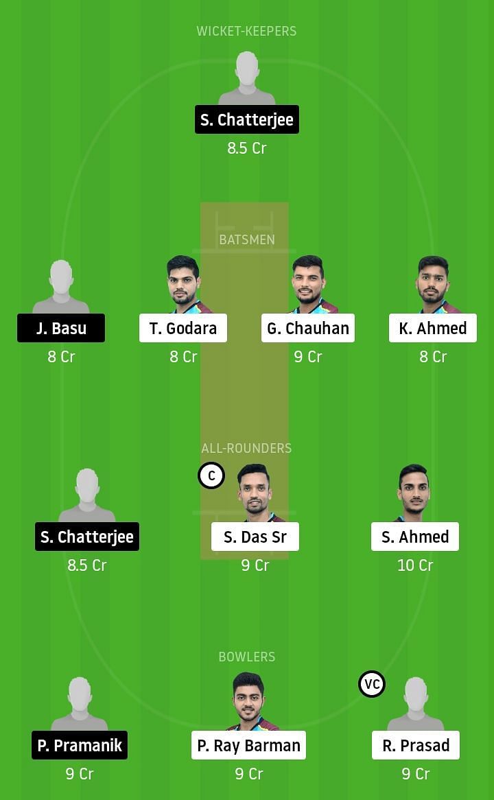 Fantasy Suggestion #1: S Chatterjee, J Basu, T Godara, G Chauhan, K Ahmed, S Chatterjee, S D Sr, S Ahmed, P R Barman, R Prasad and P Pramanik.