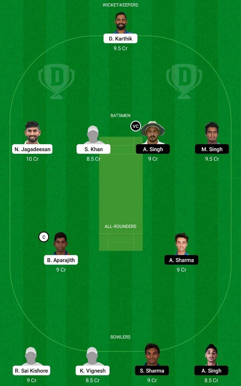 Captain: Anmolpreet Singh, Vice-Captain: Dinesh Karthik