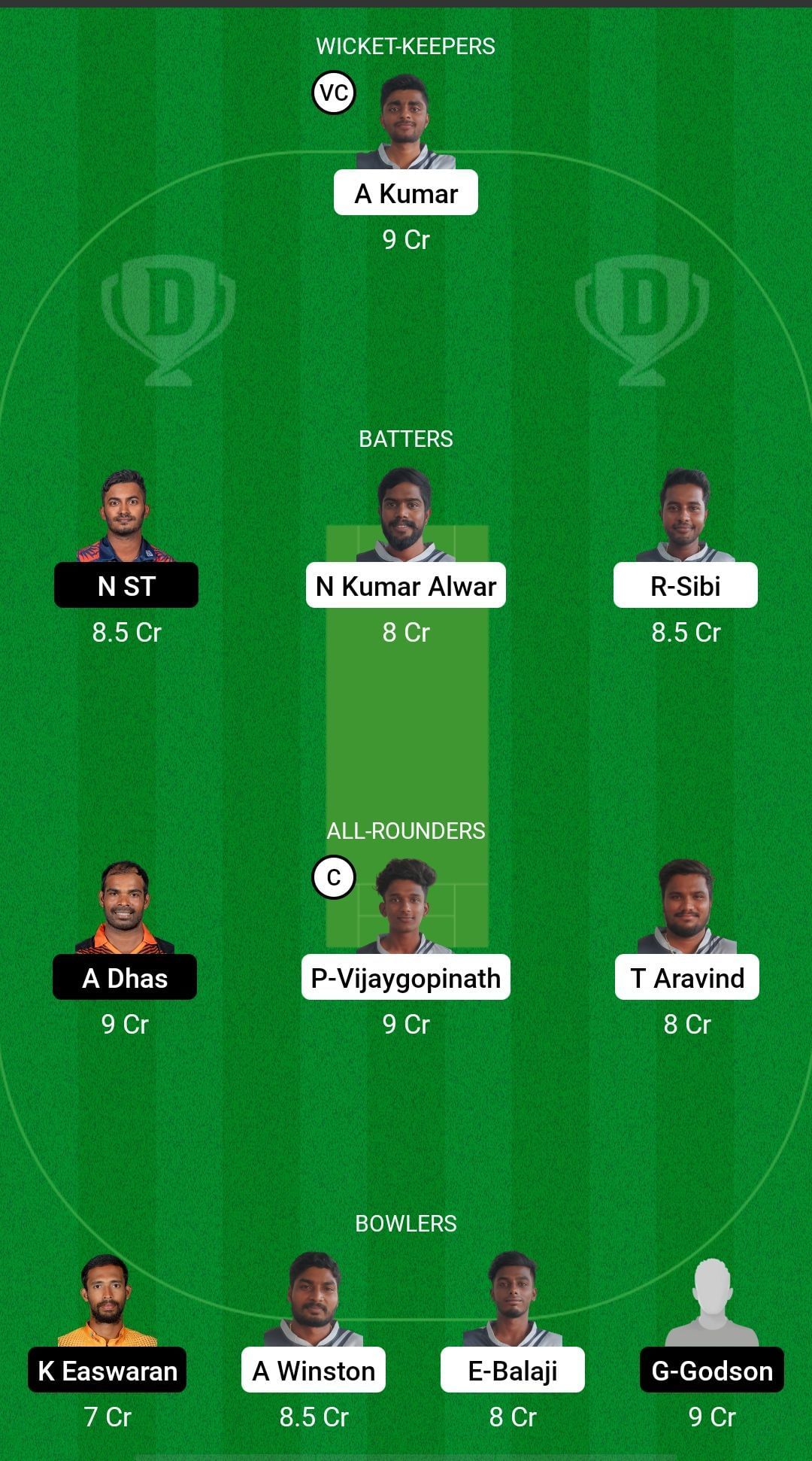 Batters: Nishaanth Kumar Alwar, Natarajan ST, R-Sibi