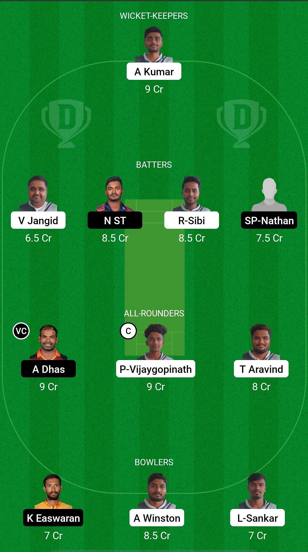 Batters: R-Sibi, SP Nathan, Vikram Jangid, Natarajan ST