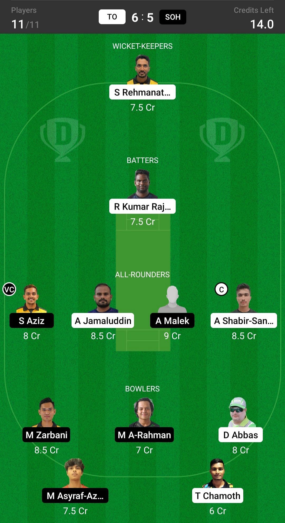 TO vs SOH match captain and vice-captain choices