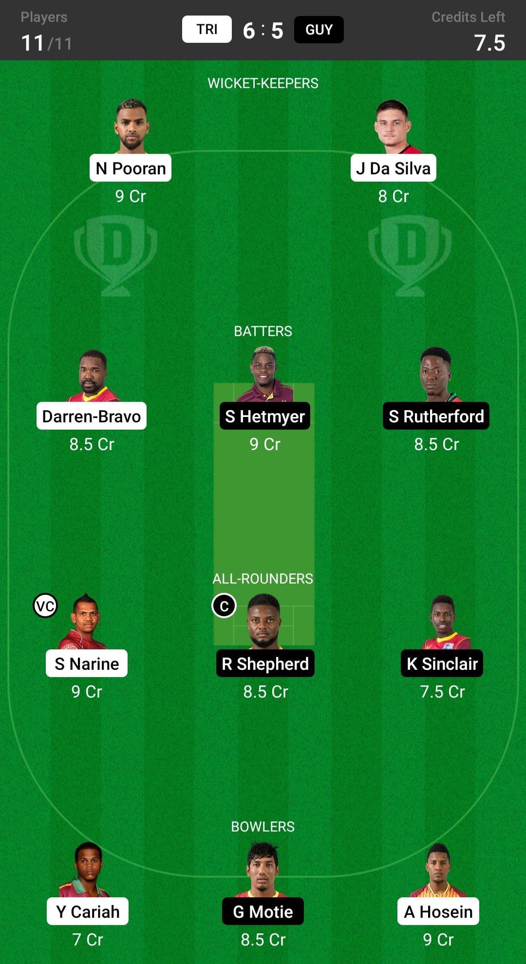TRI vs GUY match captain and vice-captain choices