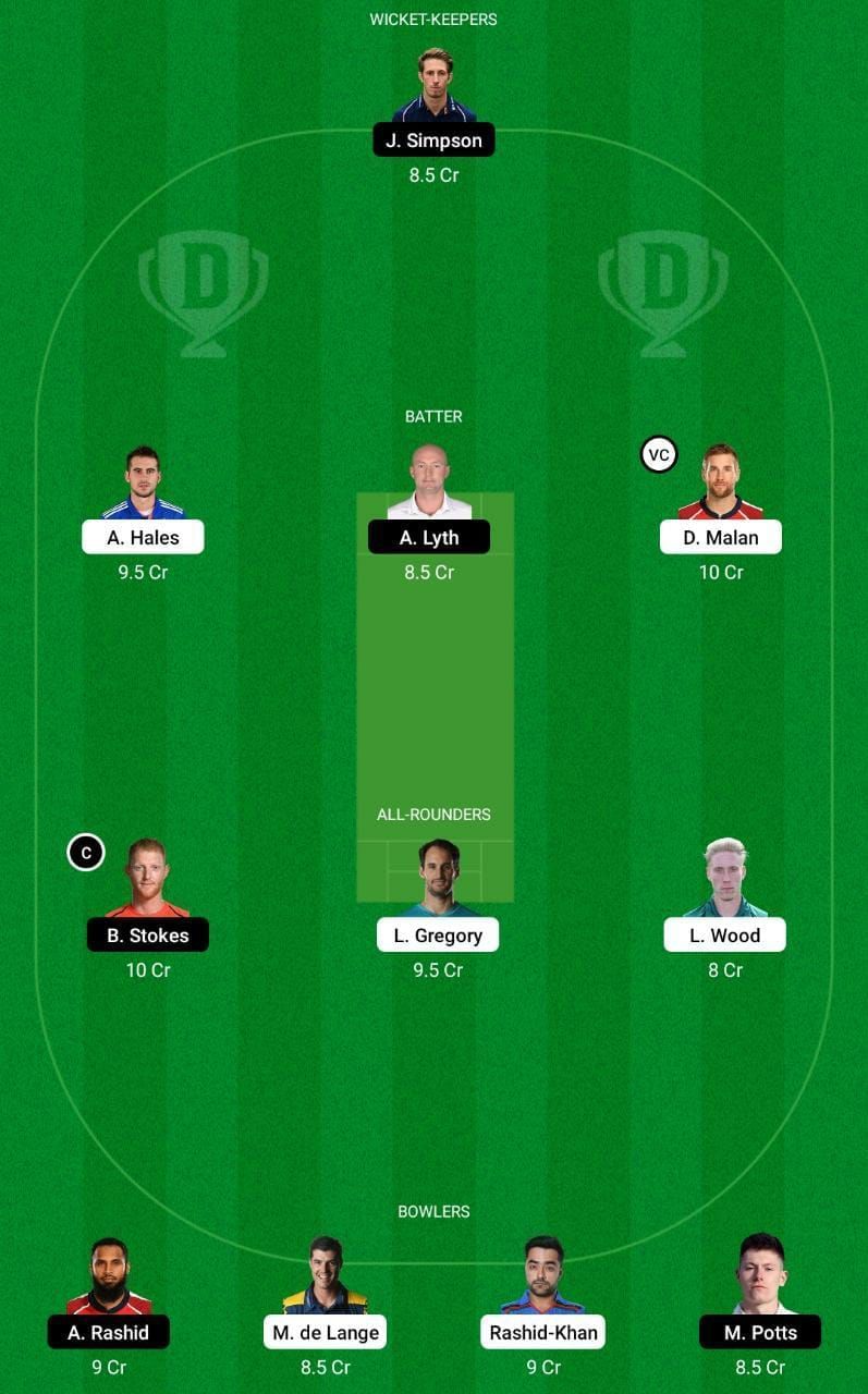 Fantasy Suggestion #2: Josh Simpson, Adam Lyth, Alex Hales, Dawid Malan, Lewis Gregory, Ben Stokes, Luke Wood, Adil Rashid, Marchant de Lange, Rashid Khan and Matty Potts