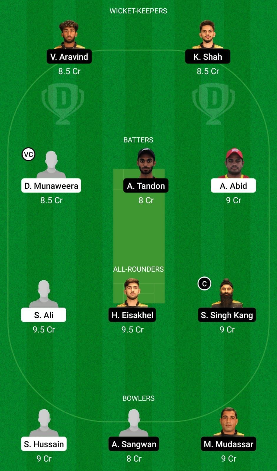 Captain: Hassan Eisakhel Vice-Captain: Ankur Sangwan