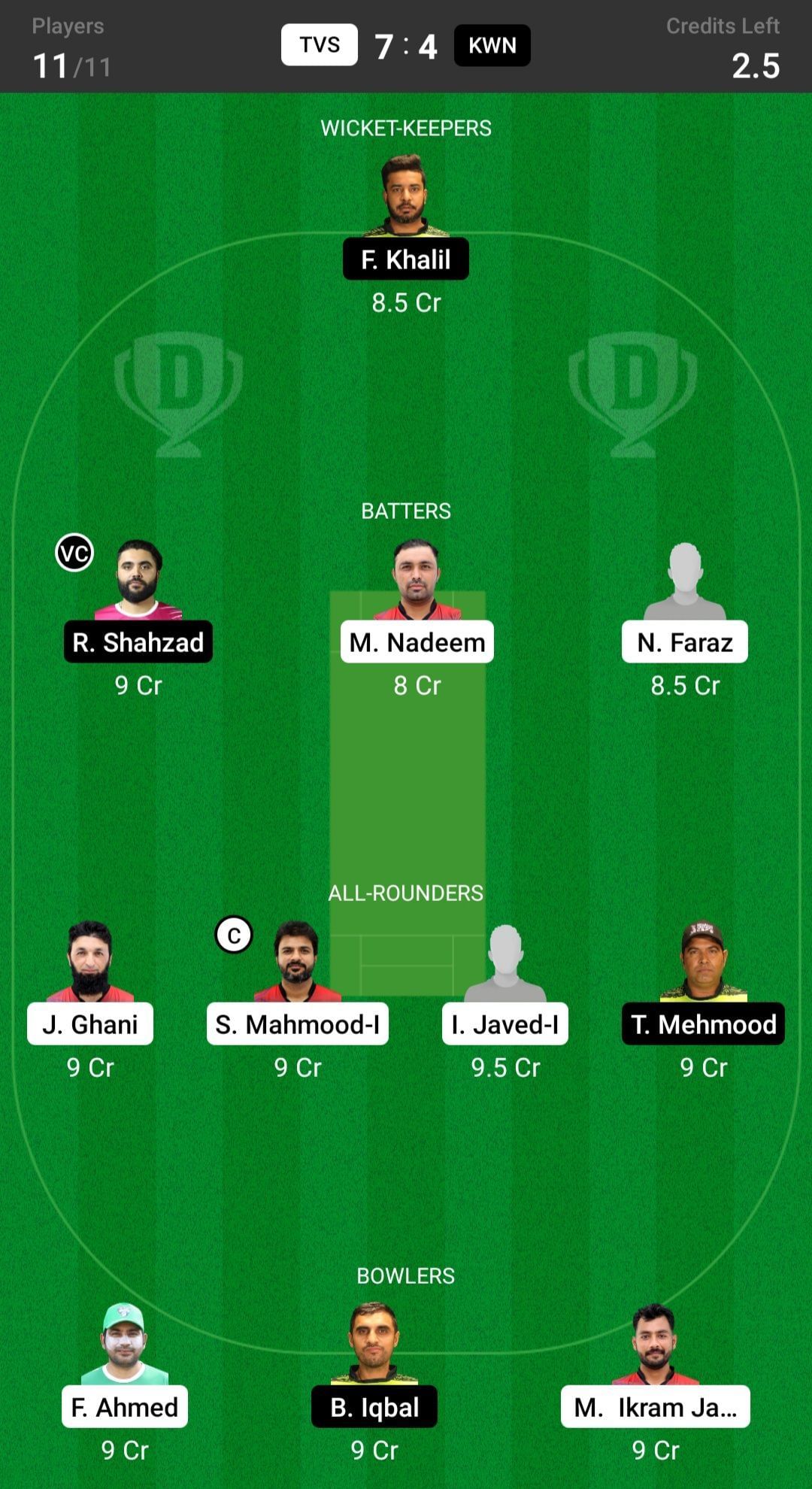 The Vision Shipping vs Karwan CC Dream11 Prediction Today, Grand League