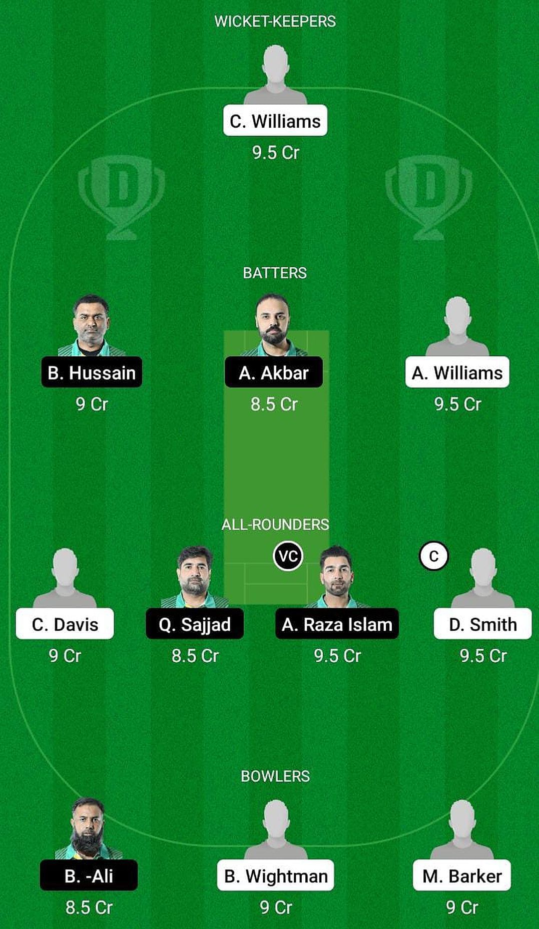 Fantasy Suggestion #1: Chris Williams, Babar Hussain, Ahsan Akbar, Alex Williams, Christian Davies, Qalab Sajjad, Ali Raza Islam, Dave Smith, Basharat Ali, Matt Barker, Bailey Wightman.
