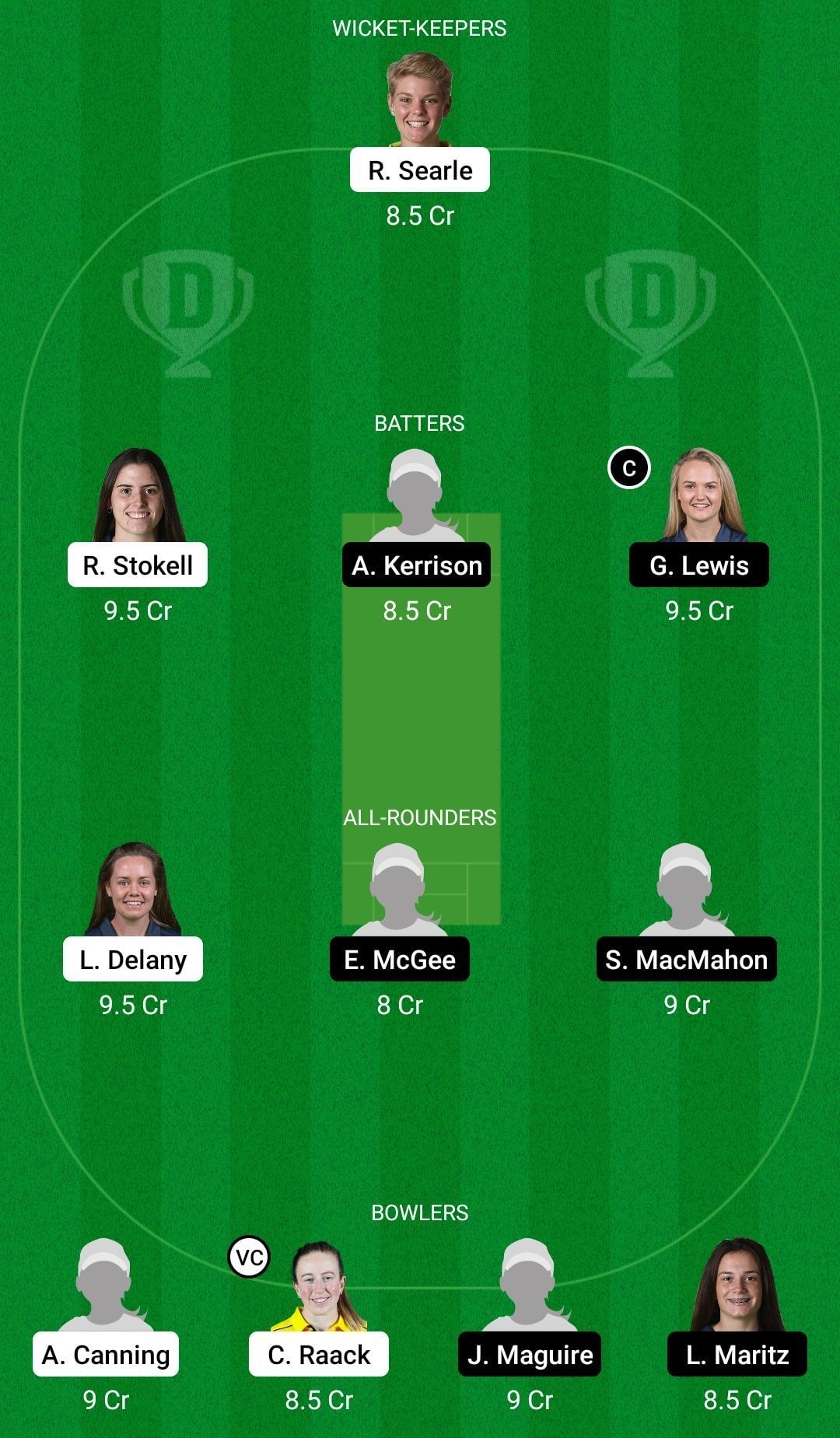 Captain: Gaby Lewis. Vice-captain: Celeste Raack.