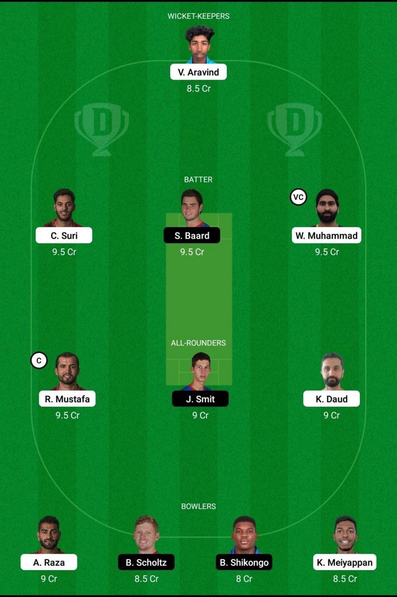 Fantasy Suggestion #1: Vriitya Aravind, Chirag Suri, Stephan Baard, Waseem Muhammad, Rohan Mustafa, JJ Smit, Kashif Daud, Ahmed Raza, Bernard Scholtz, Ben Shikongo, Karthik Meiyappan.